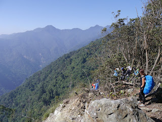 | 崖の上を行く、谷を挟んで横嶺山が見える |