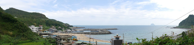 | 湖海路から見る大武崙山澳仔灣のパノラマ、海上には基隆嶼 |