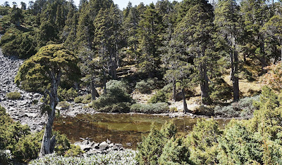 | ニイタカトドマツの林にビャクシンが混じり始める |