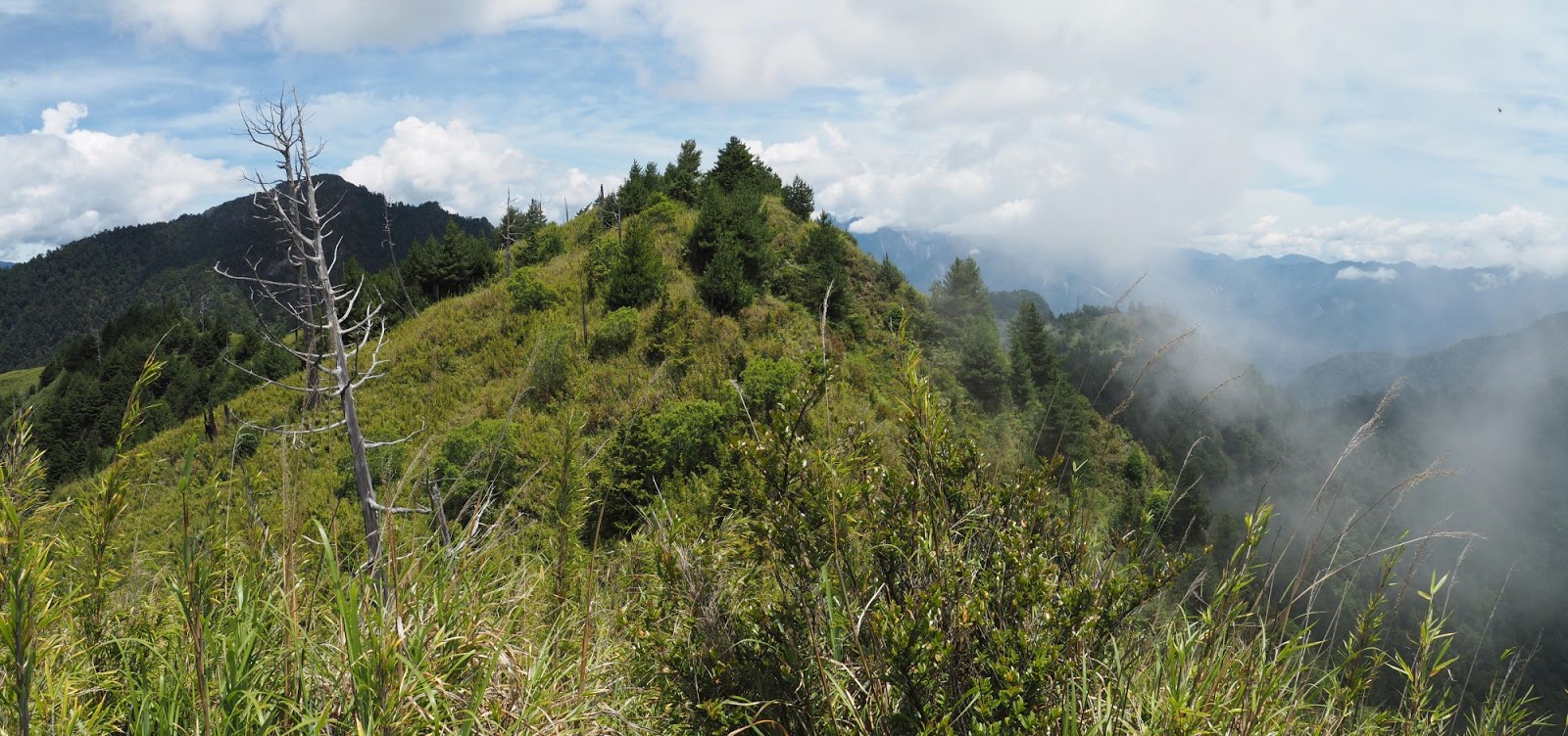 | 山頂から見る東‐南-西の180度パノラマ、遠く玉山も望める |