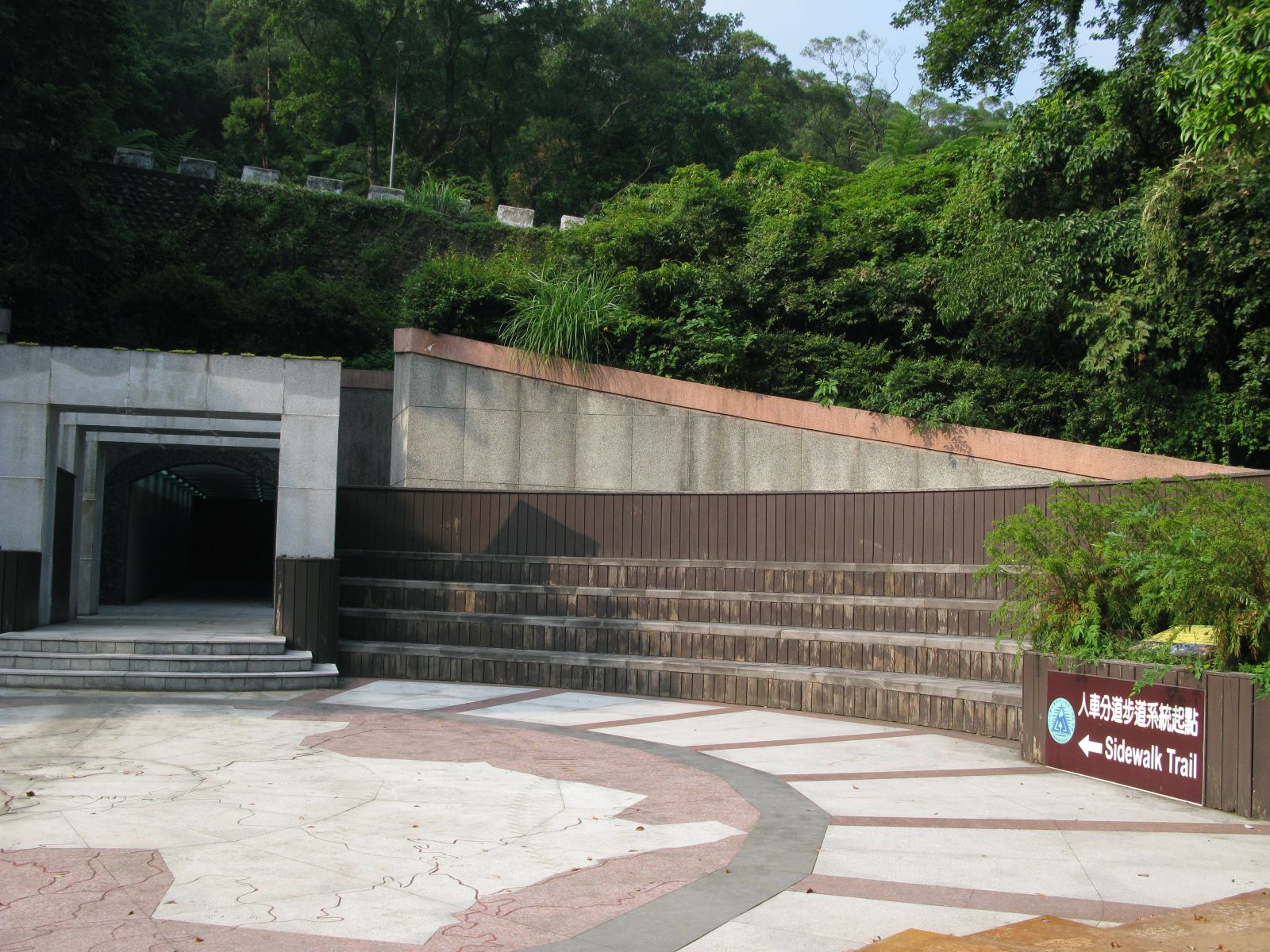人車分道 陽明山公園では、車の流れと人を分ける目的で、車道に並行した人車分道を設けている。車道のすぐわきを行くセクションもあれば、少し離れて山の中を行く部分もある。基本的に七星山のすそ野をぐるっと一周する。
