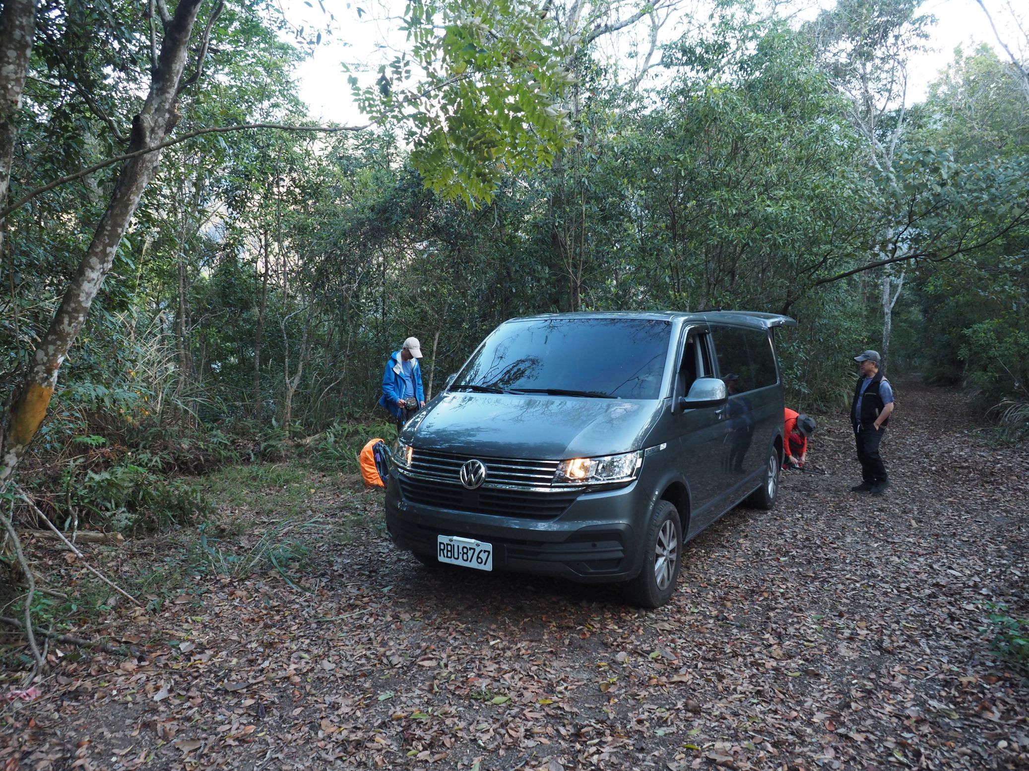 宿泊した伊露民宿を通り過ぎ、間もなく我音山登山口へと続く分岐に来る。登山口へと続く林道は、舗装されて予想していたより状態が良く、6時半過ぎに登山口(標高760m)まで車で登ってこれた。
