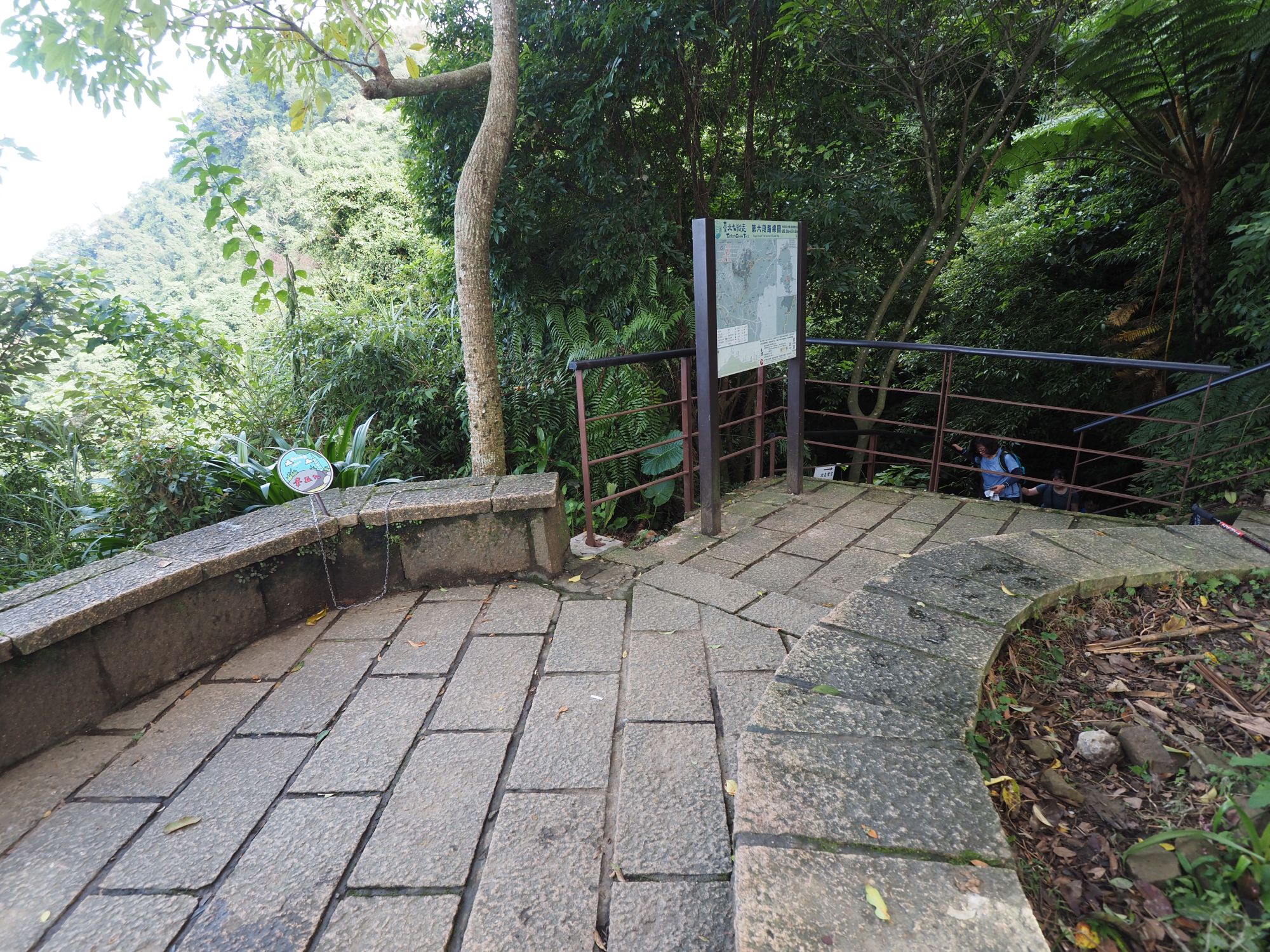 コース概要:吳興街バス停から松仁路281巷を経て信義路5段150巷を山の方向に進む。多くの登山者は、象山から入るので、この辺りでは登山者多くない。住宅が切れ沢沿いに行くと、左に塀で囲まれた大きな施設(陸軍後勤訓練中心)を見る。この塀が切れたところの曲角を左に曲がり、山へと進む。